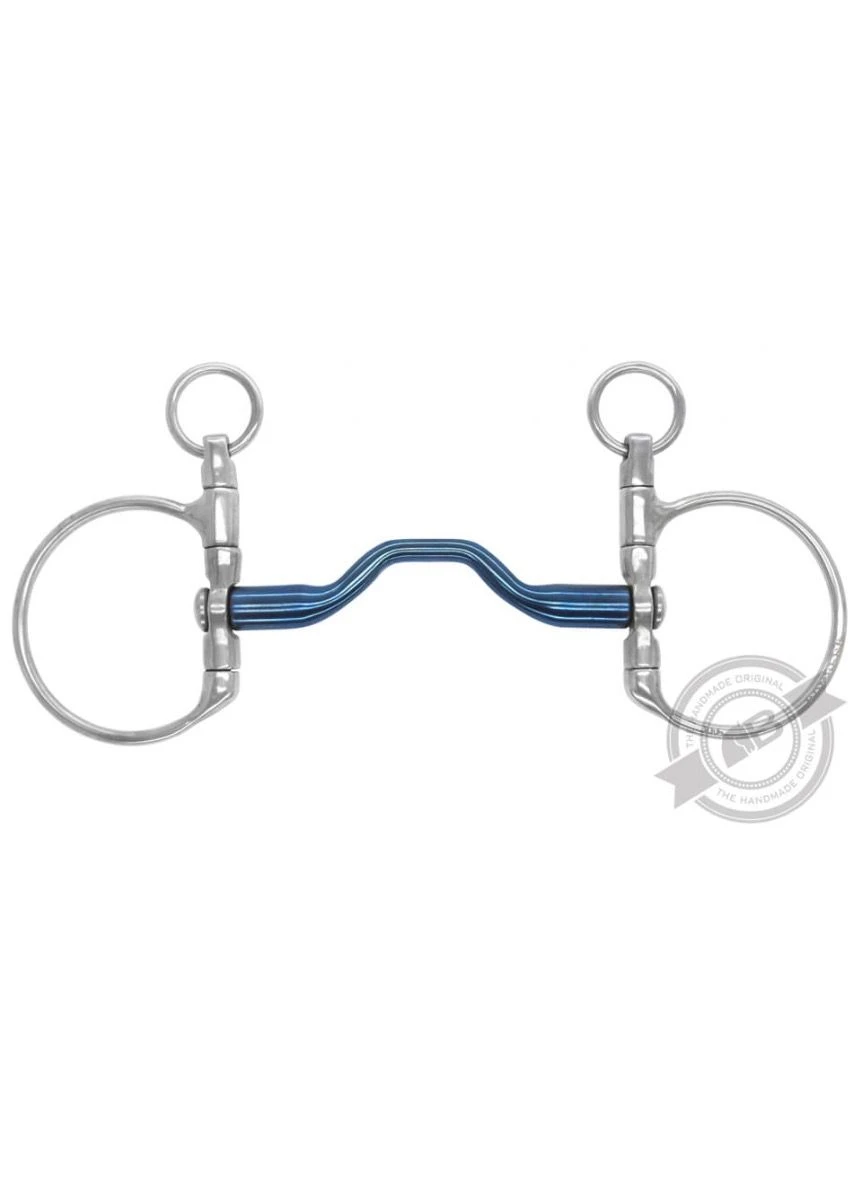 This cheekpiece was designed to work with a solid ported mouthpiece that swivels, so it can naturally adjust with the horses movements, maintaining a comfortable position.