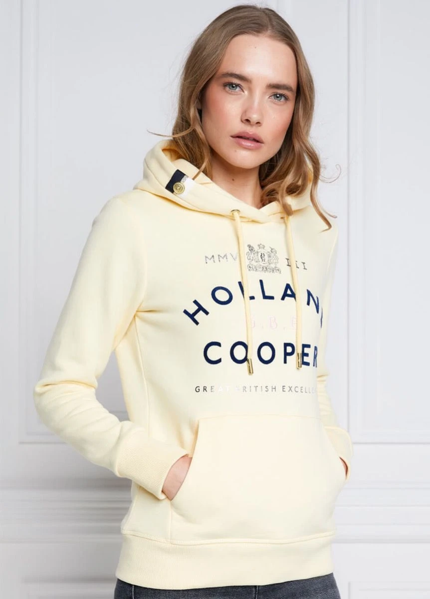 The GBE Flock Logo Hoodie encompasses our signature hardware with our HC crest and logo. In the classic overhead hoodie style, it is constructed with a lightweight ribbed cuff and hem for ultimate comfort. The hoodie details an embroidered, velvet flock finish of our HC graphics on the chest, and an embroidered hood makes for a truly luxurious feel. Finished with our embossed hardware on the drawstring and signature branded rivets on the hood.