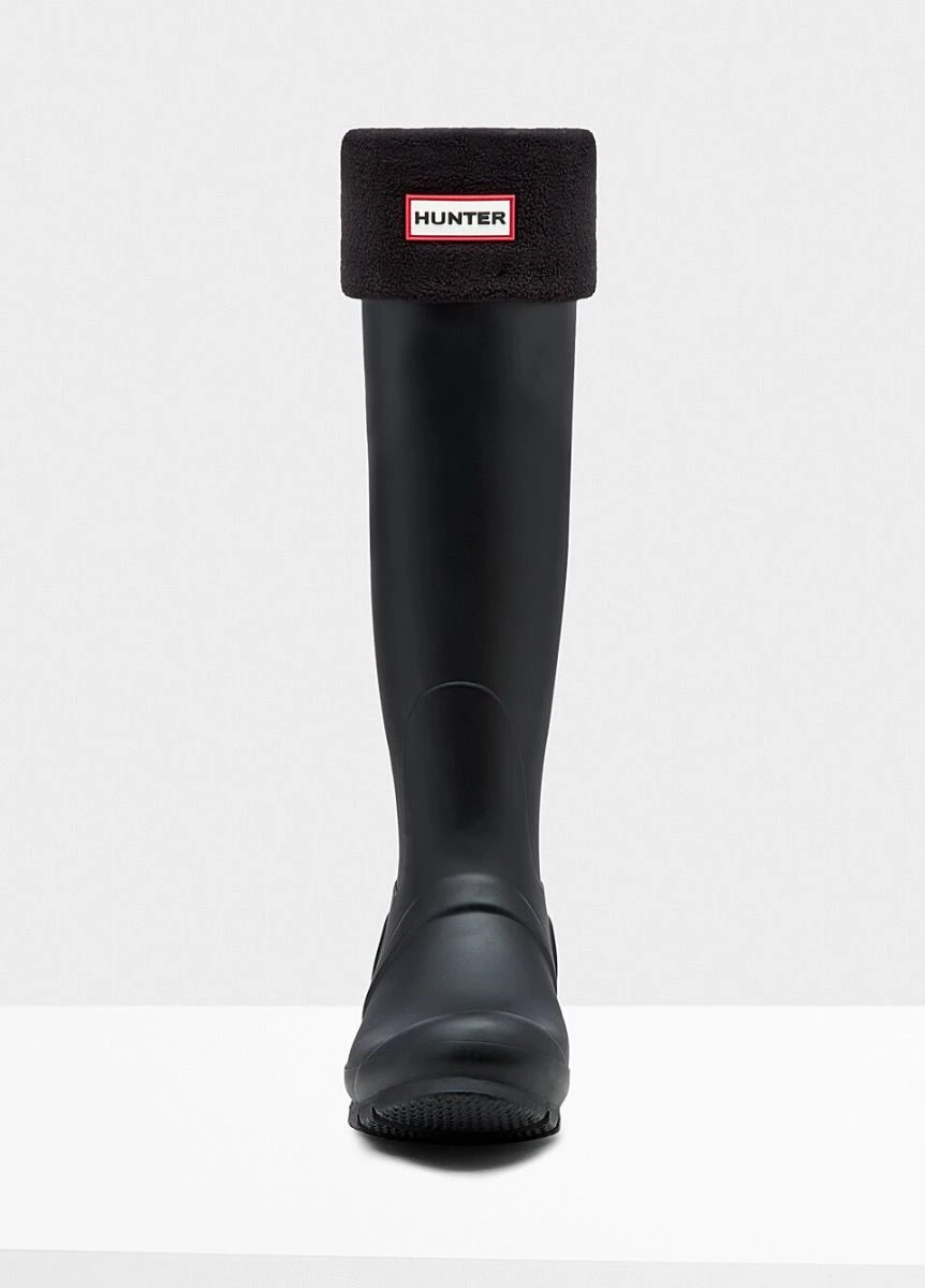 Add a personal touch to your Hunter Boots with these warm and snug boot socks. Designed to fit comfortably inside the Original Tall Wellington Boot and enhance fit while adding comfort and warmth, these boot socks feature a black fleece leg and matching black fold down cuff finished with the Hunter Original logo.