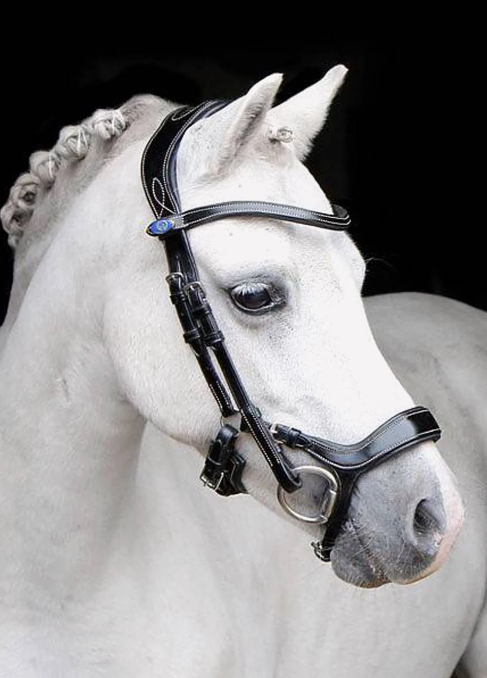 The cheek pieces have the PS of Sweden patented and selectable elastic Cradlesโข, which allows the bit to suspend in the horseโs mouth. This also helps to evenly the pressure across the neck. PS of Sweden elastic Cradlesโข are designed so you can easily hook them on and off.