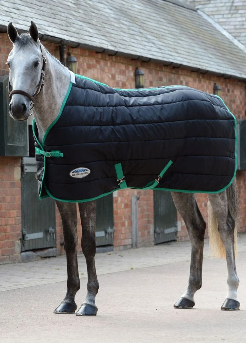 A great every day stable rug: The WeatherBeeta ComFiTec 210D Channel Quilt Standard Neck Medium stable rug features a 210 denier channel quilted outer with a 210T polyester lining, warm 250g of polyfill with channel quilt design to keep the polyfill in place for optimum coverage and single adjustable front buckle closure with touch tape, twin low cross surcingles and tail cord.