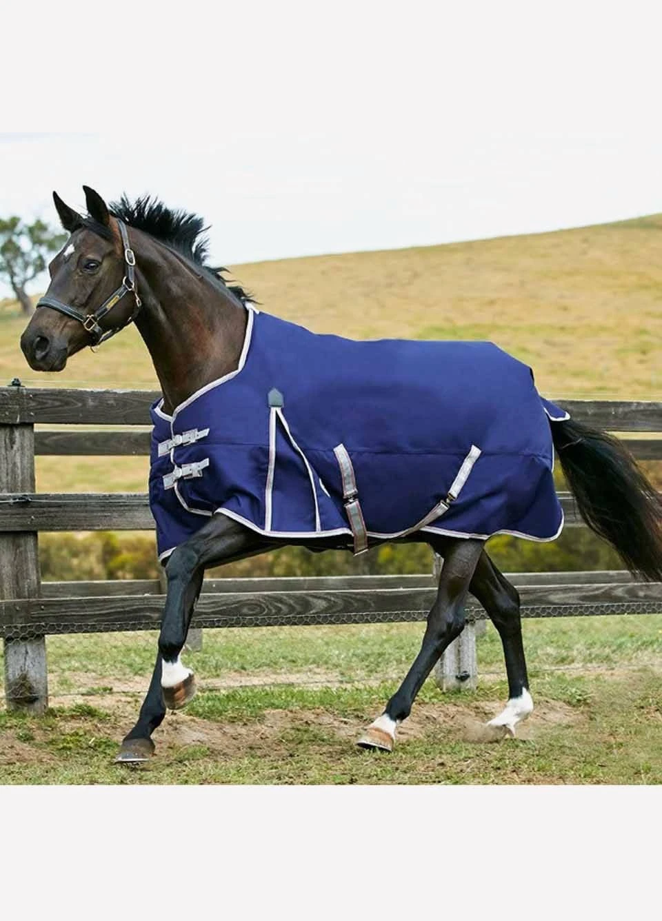 Weatherbeeta have put in their traditional shoulder gusset which we feel will broaden it’s appeal. It has adjustable and removable leg straps, two buckle fastenings at the front, a standard tail flap and cross surcingles.ย